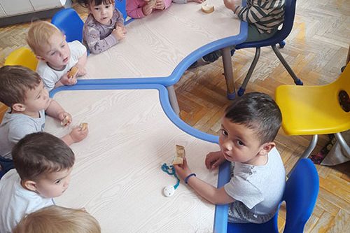 Васпитно образовани рад се обавља у 3 и по групе, укупно 57 малишана.