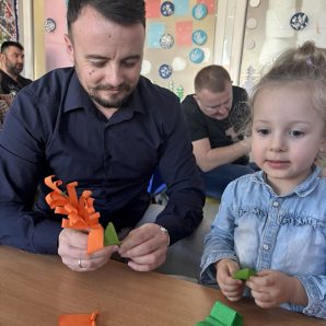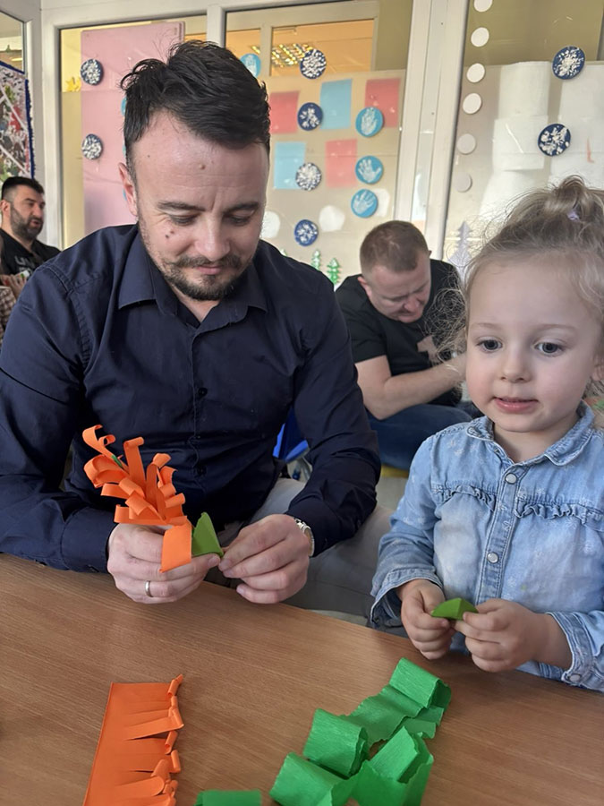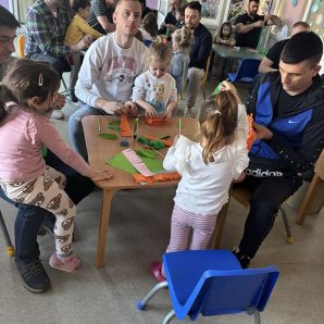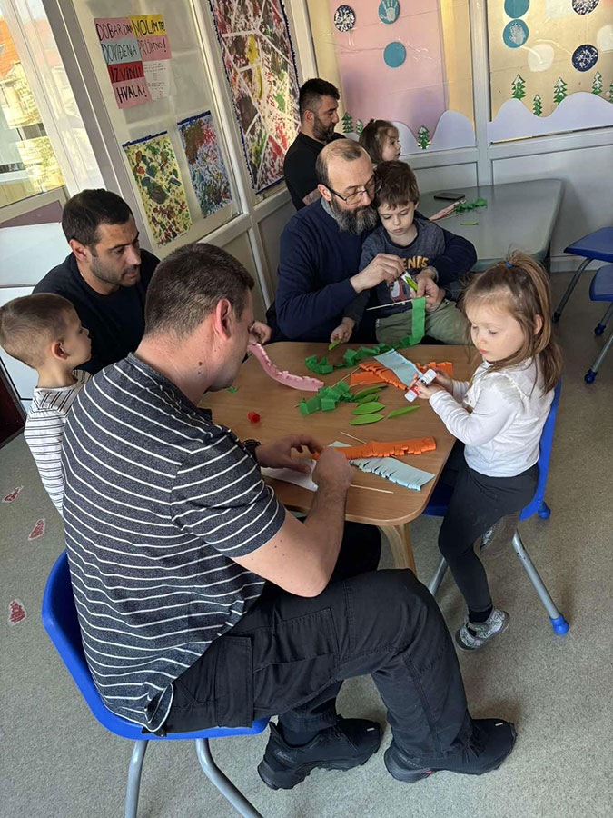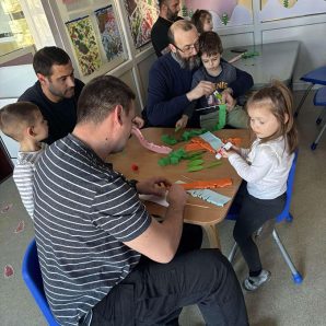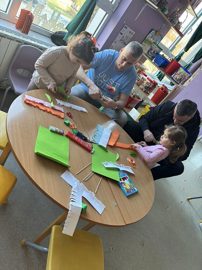 У млађој васпитној групи васпитачице Јелена и Корина у сарадњи са породицом, реализовале су креативну радионицу, где су заједно са децом позвале тате да заједништво ојачају и оснаже.