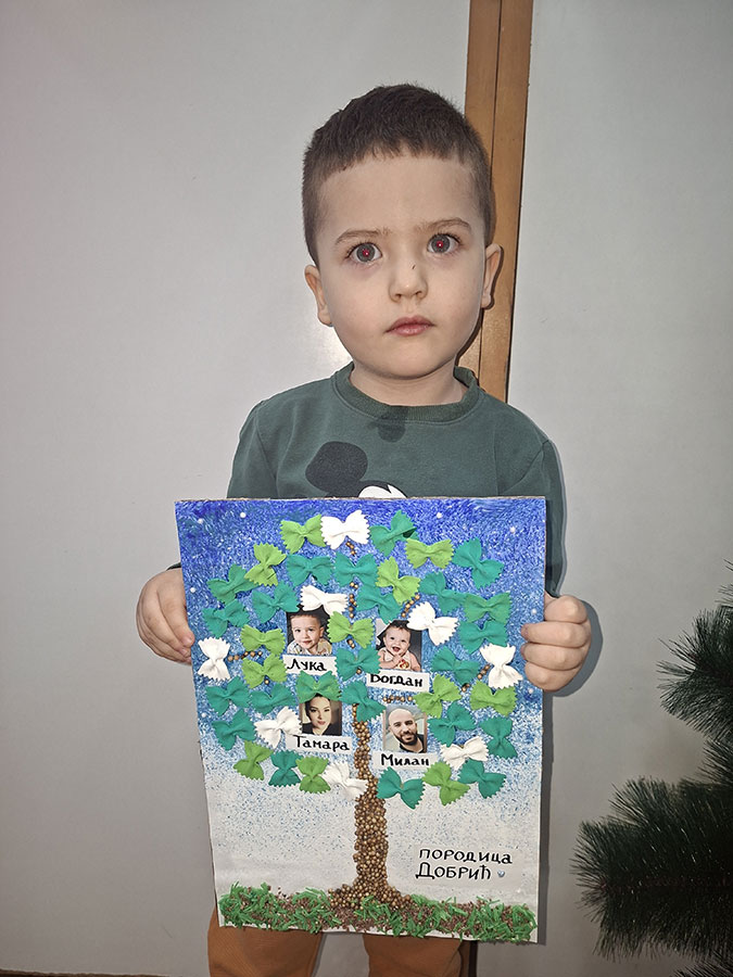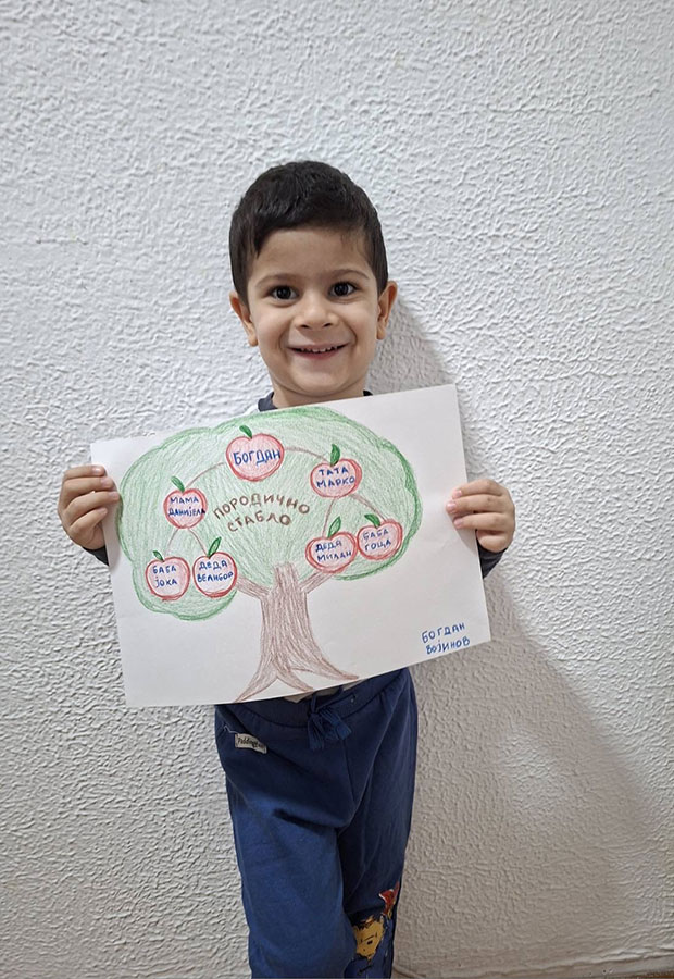 Васпитна група: Млађа вртићка Васпитачи: Снежана Вемић и Јована Крецуљ Тема пројекта: Моја породица Активност: Израда породичног стабла уз помоћ родитеља, кроз етапу ,,Пројекат иде кући,,.