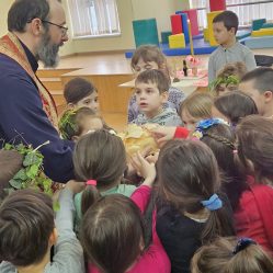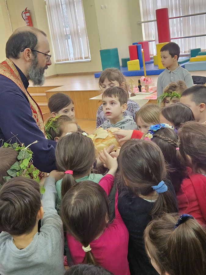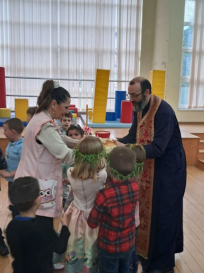 Овим поводом вртић је посетио и свештеник Мирко, који је деци на леп и њима разумљив начин говорио о значају празника и благословио окупљене.