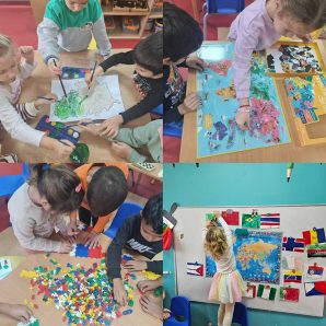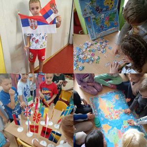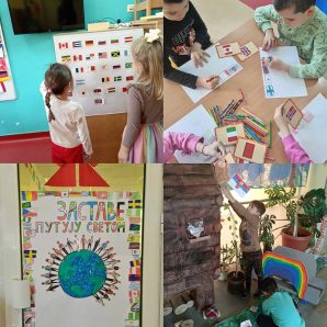 Током пројекта „Заставе путују светом“ деца су имала прилику да на занимљив и креативан начин упознају различите земље и њихове заставе. Кроз различите активности – цртање, сликање, прављење застава, слагање мапа и слагалица света – истраживали смо где се поједине државе налазе и по чему су препознатљиве.