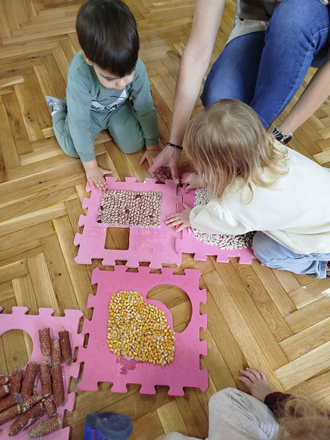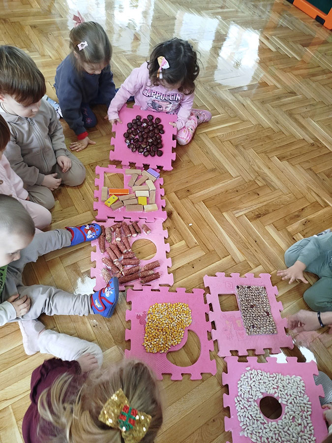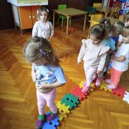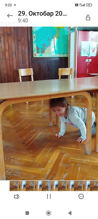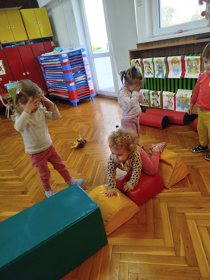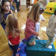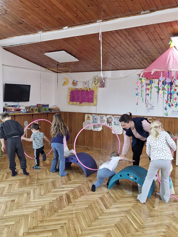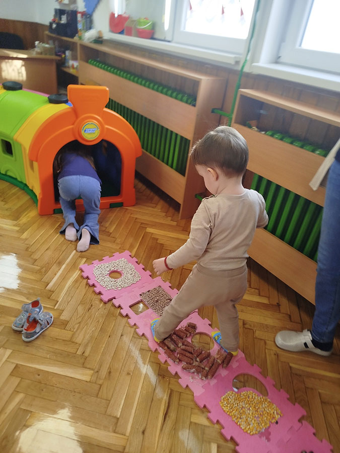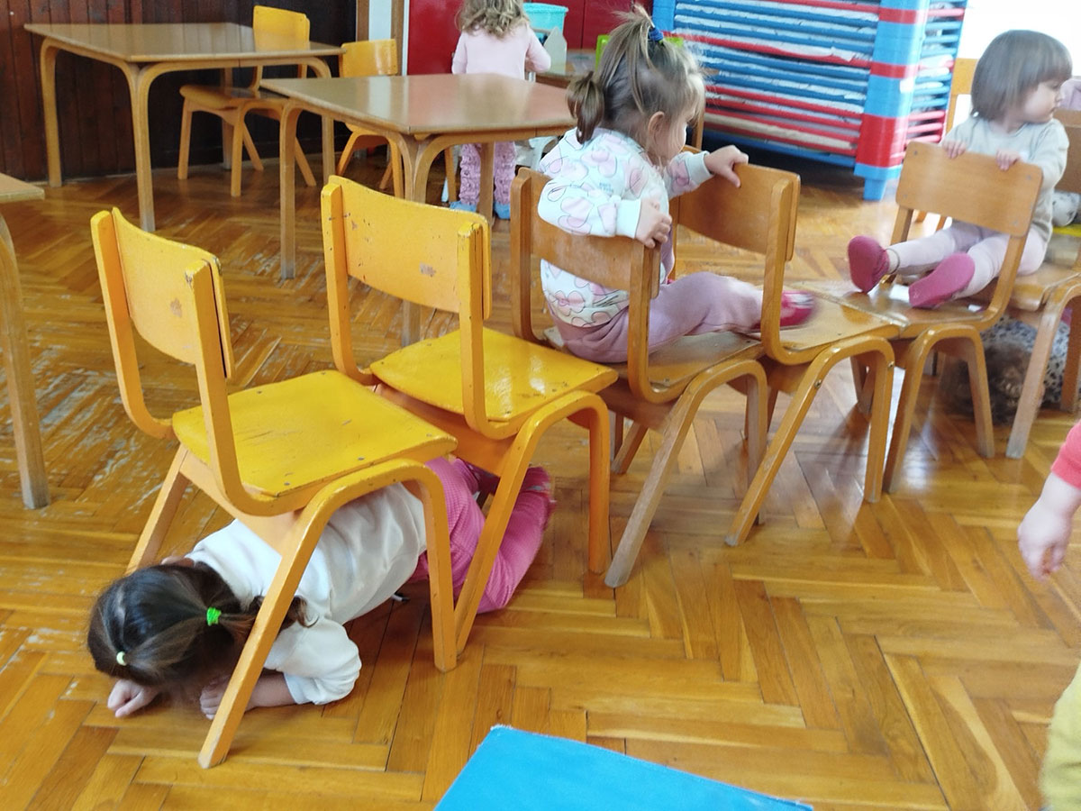 У разноврсним ситуацијама за учење, деца су савладавала полигоне, сачињене од меких и тврдих елемената.На тај начин су усавршавала координацију покрета, крупну моторику, учећи се тимском раду.