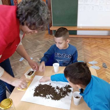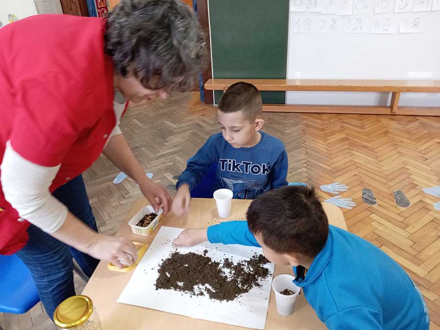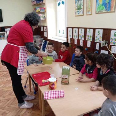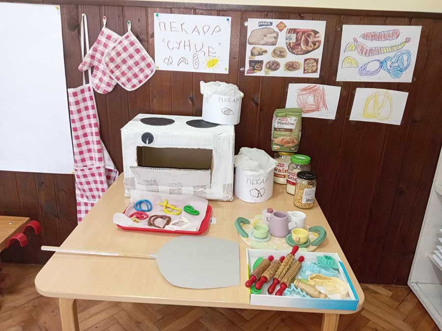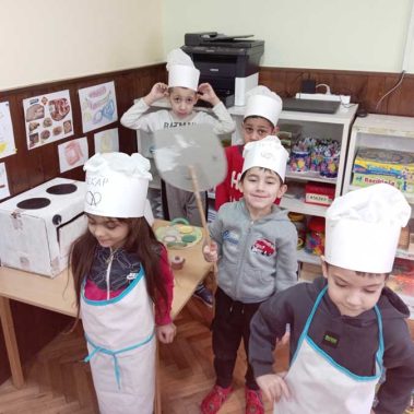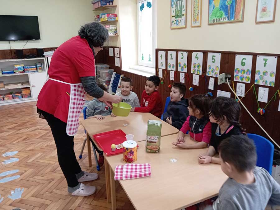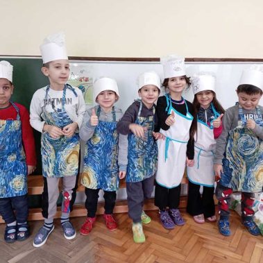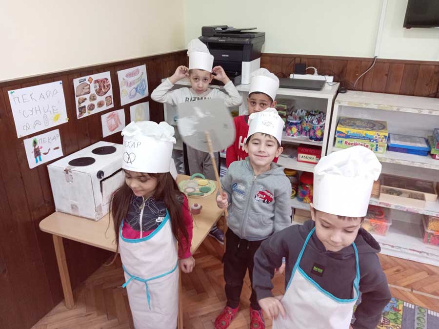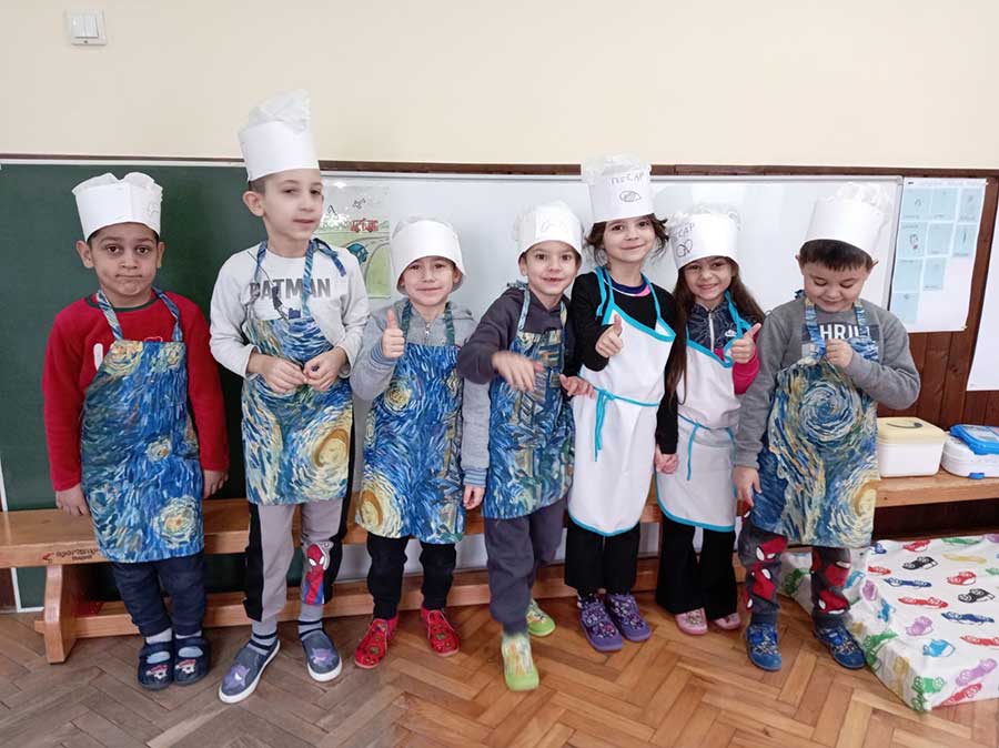 Руке перем, брашно сејем, капица на глави, месим тесто тако вешто као пекар прави. Пећ се жари, у њу стављам хлепчиће по реду, кора глатка – биће слатка кад је деца једу.