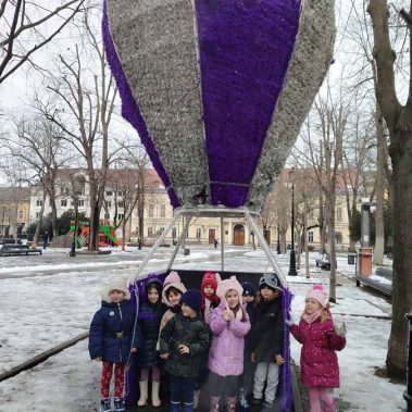 Затим смо “летели” летећим балоном, а након тога обишли поставку балона у нашем градском парку.