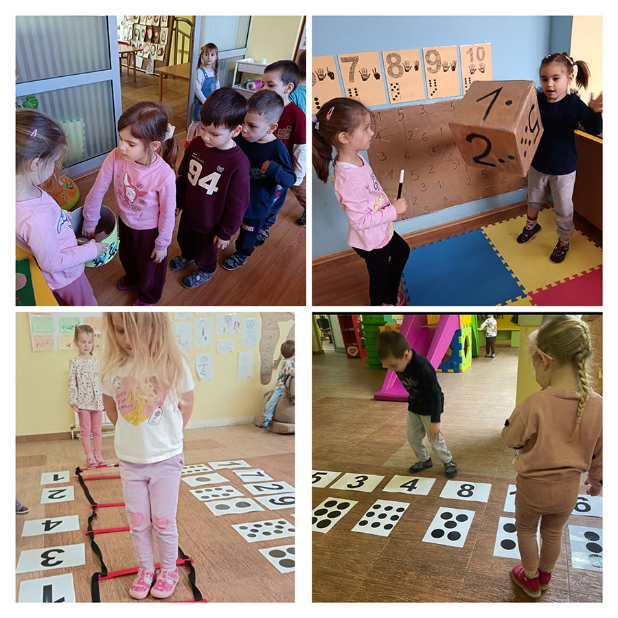 Такмичарске и покретне игре приближиле су деци појам о времену. Тако смо константно мерили време потребно да се стигне до циља, пређе одређена препрека… Отуда бројеви постају део наше свакодневнице те смо почели да се играмо и њима. Учимо да бројимо, повезујемо симбол броја са одговарајућим бројем тачкица, правимо путању међу измешаним бројевима. Уводимо и нови ритуал – извлачење бројева и седање за сто под одређеним бројем пре обедовања.