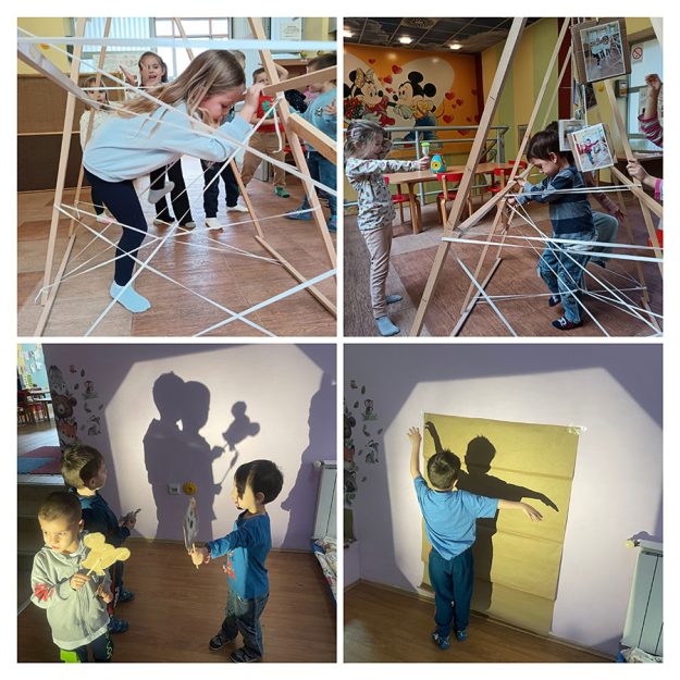 Деца развијају крупну моторику, координацију, брзину, равнотежу и спретност кроз различите врсте кретања. Такође опажају кретање свог тела путем сенки. Опцртавамо и правимо силуете. Средња обданишна група Васпитачи: Марија Јаковљевић Јелена Петровић
