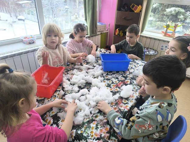 Кад нас снег изненади у вртићу и не можемо напоље да правимо снешка, јер нисмо понели опрему….лако смислимо начин да снешко мало види како се игра у нашем вртићу. Деца старије групе васпитачице Маје и Тијане радују се игри са снегом чак и у радној соби.
