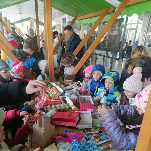 Забавиштанци Бубамаре у акцији “Рециклажа”, плата испред градске управе.