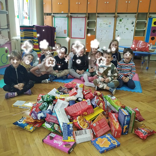 Поводом дечије недеље организовали смо сакупљање слаткиша на нивоу целог вртића за децу из “Споменка”. Организовали смо спортске игре у дворишту вртића ( млађе групе, средња група, старије групе, најстарија група).
