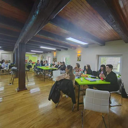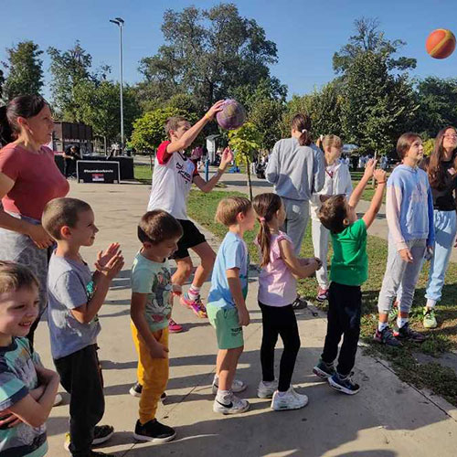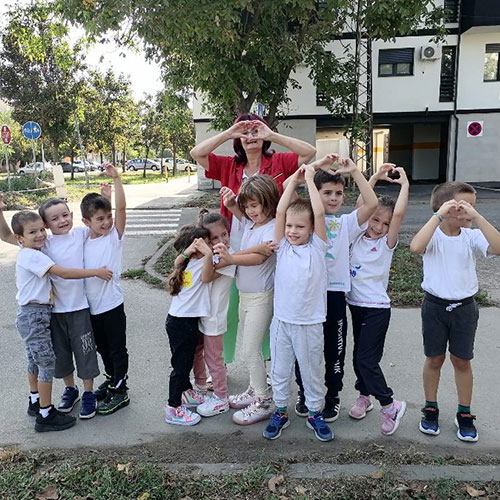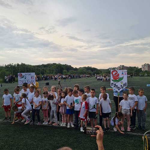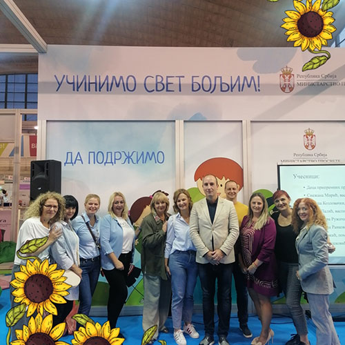 Деца из вртића “Бамби” са својим васпитачима Снежаном Мирић, Наташом Козловачки, Бојаном Лалић и стручним сарадницима Александром Ружичић и Александром Ранковић, су имали ту част да отворе Сајам образовања на штанду Министарства просвете.