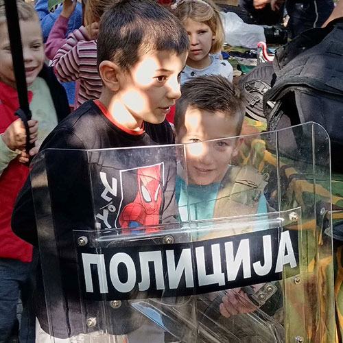 Деца предшколске групе су у Народној башти 10. октобра имали мали јавни час са припадницима ПУ Панчево. Кроз дружење са децом из других вртића, као и децом првих разреда ОШ, упознали смо рад полиције и њихову опрему. Деца су испробавала заштитне наочаре, стављали кацигу на главу, користили штит, обували чизме… “Возили” су полицијски мотор, фотографисали…