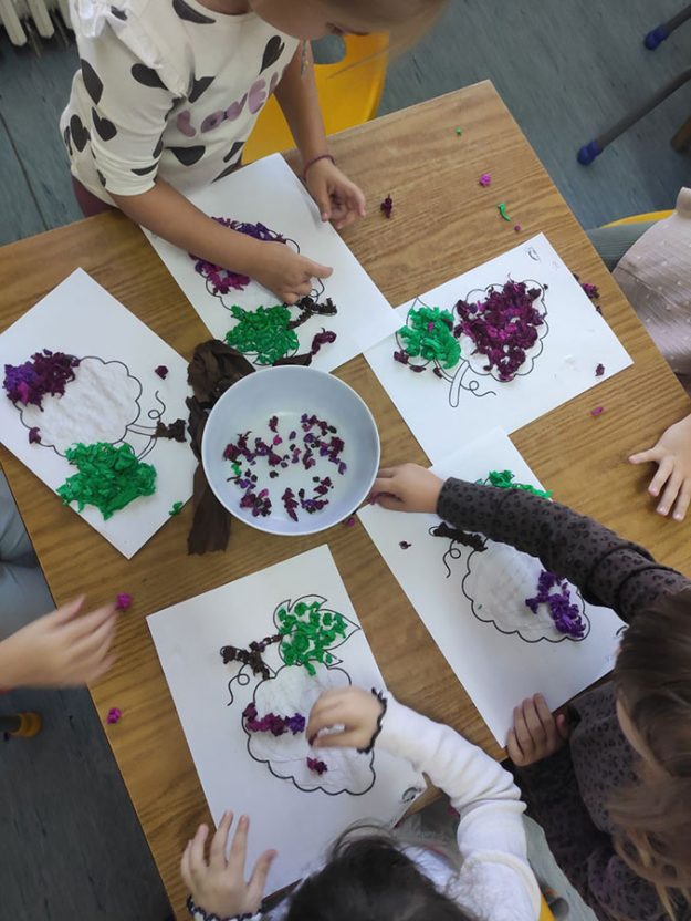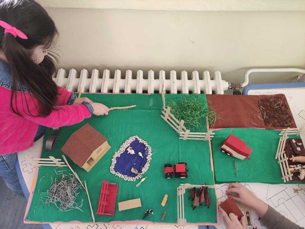 Поводом новог пројекта и разговора о селу, сеоском животу и животињама, правимо макету нашег села, вежбамо ситну моторику док правимо поврће за њиву.